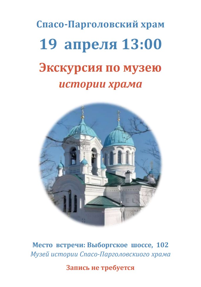 📍 Место встречи: Выборгское шоссе, 102 (музей Спасо-Парголовского храма).