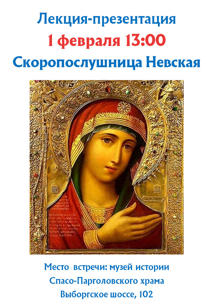 1 февраля в 13:00 приглашаем вас на беседу об одной из самых любимых икон нашего города, чья история удивительным образом переплетена с судьбой Спасо-Парголовского храма. Мы узнаем, как уникальный список стал «сердцем» верующего Санкт-Петербурга, какая духовная связь соединяет подвижника Спасо-Парголовского храма с образом Богородицы и о чем молятся перед «Невской Скоропослушницей» в наши дни.