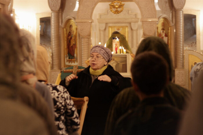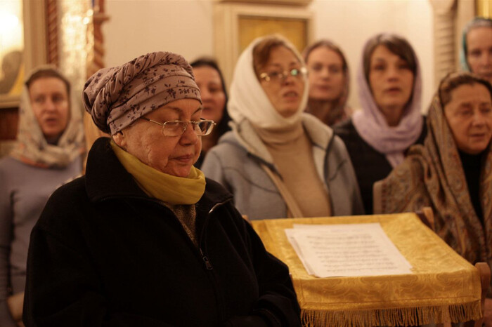 На средней Литургии пел весь храм под управлением почетного регента Ирины Ивановны Ивановой.
