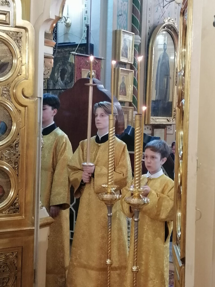 На средней Литургии пели все собравшиеся под управлением Ирины Ивановны Ивановой, почетного регента Спасо-Парголовского храма.