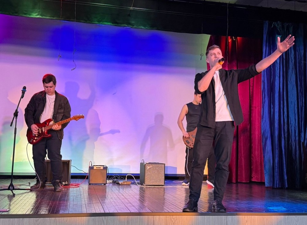 Песней "Небо славян" открыла юбилейный концерт вокально-инструментальная группа "Реальность". Группа образована выпускниками, активными участниками ВПК "Ратоборец" Фёдором и Алексеем Михайловыми вместе с иереем Сергием.