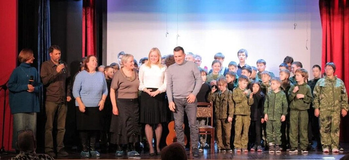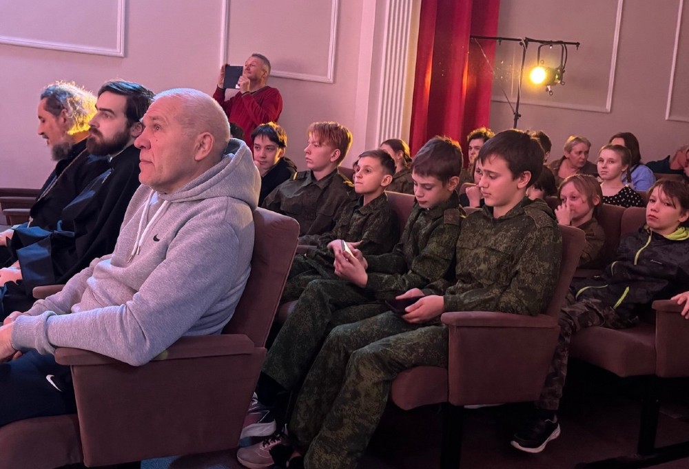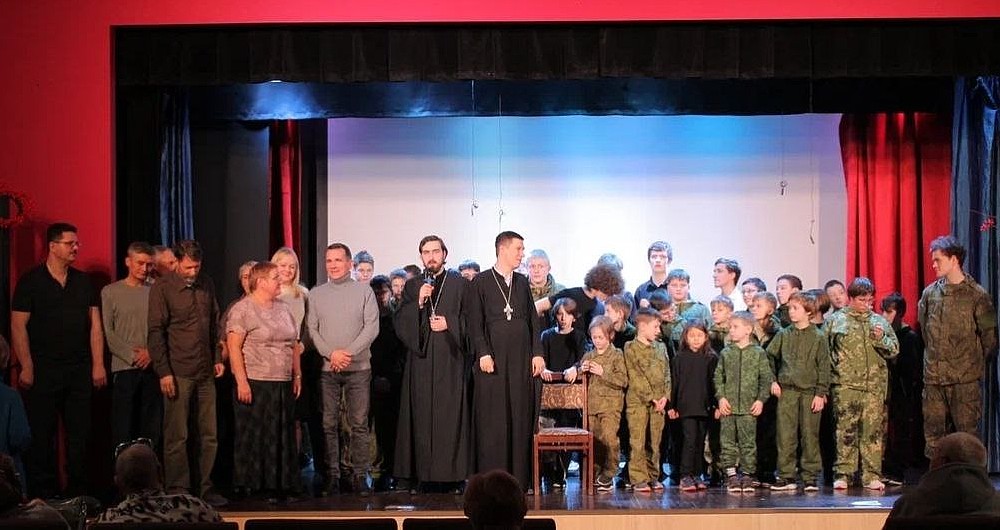 На концерте были представлены отрывки из постановки "Василий Теркин" и вальс " под песню "Ах, эти тучи в голубом". Выпускники вместе с сегодняшними воспитанниками вальсировали на сцене воскресной школы.