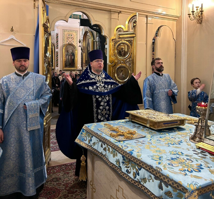 6 апреля, в канун праздника Благовещения Пресвятой Богородицы, благочинный Выборгского округа протоиерей Роман Ковальский возглавил Всенощное бдение в Спасо-Парголовском храме.