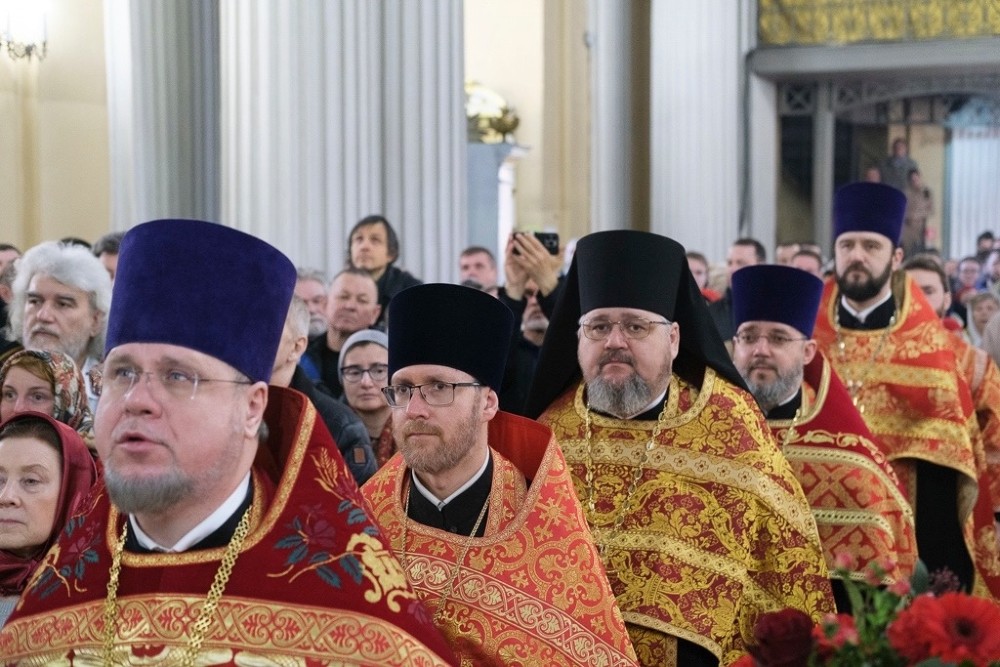 12 апреля 2026 года благочинный Выборгского округа протоиерей Роман Ковальский сослужил митрополиту Санкт-Петербургскому и Ладожскому Варсонофию за Пасхальной Вечерней в Свято-Троицком соборе Александро-Невской лавры.