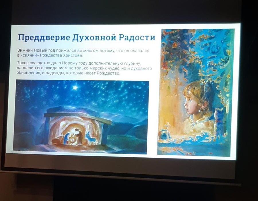 А уже в воскресенье, 21 декабря, атмосфера в музее сменилась на познавательно-сказочную. Лекция-презентация «Новогодний калейдоскоп» стала настоящим подарком для прихожан.