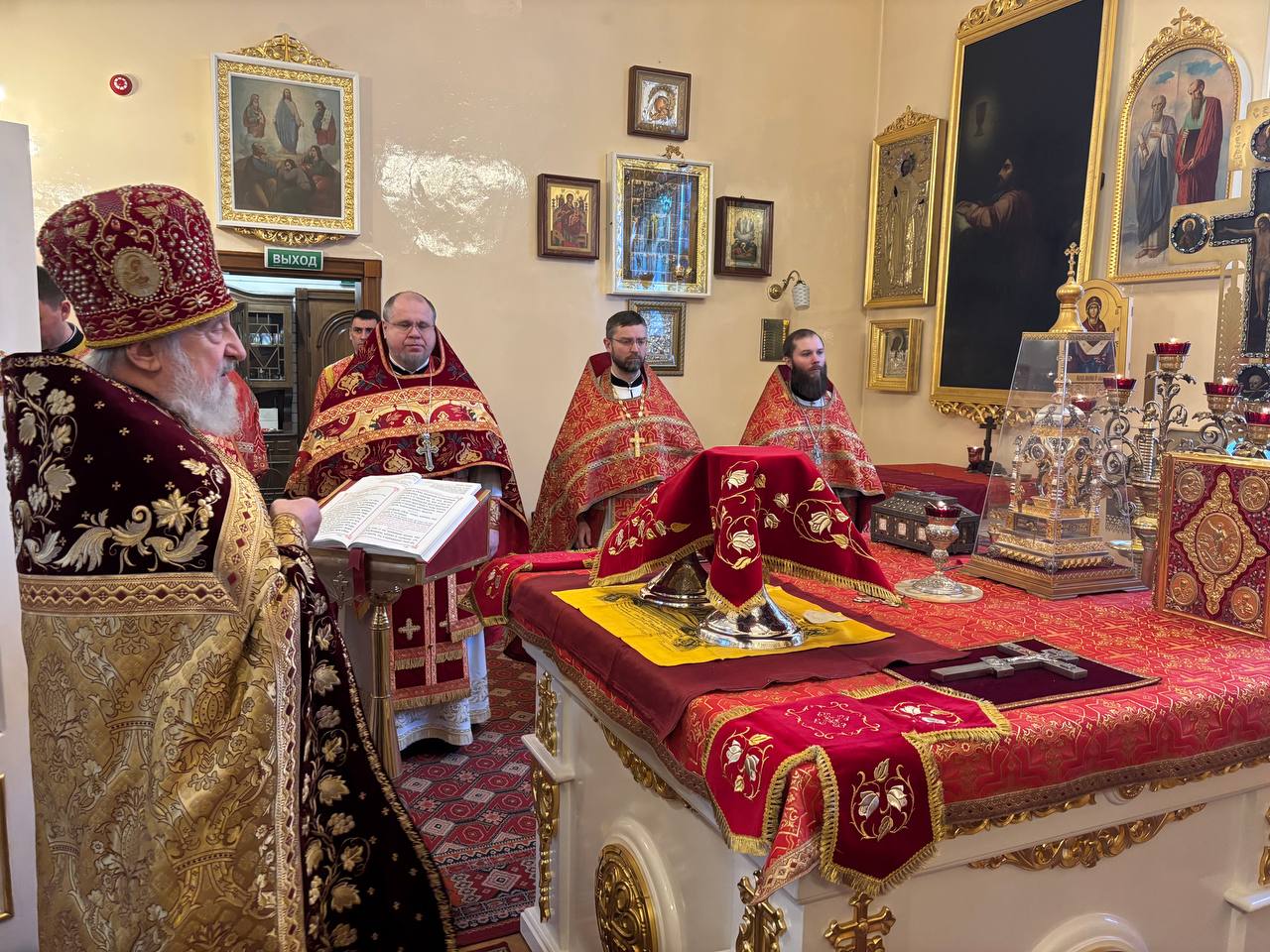 Праздничную Божественную литургию возглавил протоиерей Александр Будников. Ему сослужили благочинный Выборгского округа протоиерей Роман Ковальский, настоятель храма протоиерей Александр Рябков, а также духовенство Приморского и Выборгского благочиний.