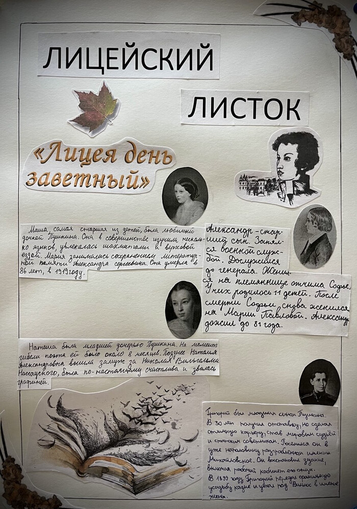 Вторая традиция - составление «Лицейского листка» каждым классом старшей школы и его представление на Литературной гостиной.