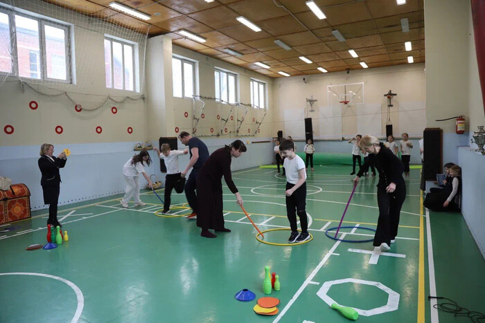 Пока одна половина уничтожала маленькие символы солнца, другая играла в веселые эстафеты в спортивном зале! Ведь в расписании каждого класса есть спортивная перемена, где можно активно отдохнуть! Но в этот день в спортивном зале было особенно здорово!