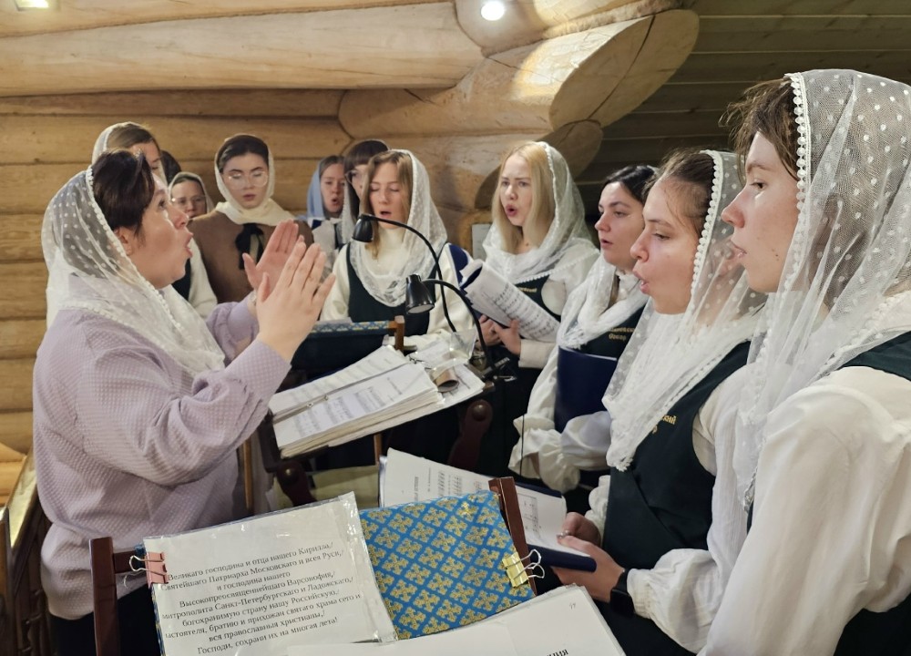 Молитвенная эстафета продолжилась в Спасо-Парголовском храме, где в этот день были отслужены три Литургии. На средней службе под руководством почетного регента Ирины Ивановны Ивановой пели все собравшиеся прихожане.