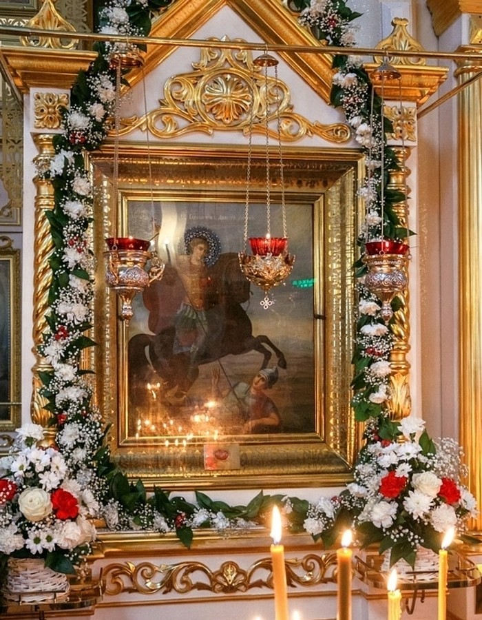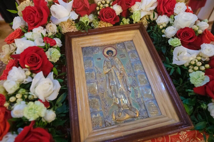 Было совершено славление перед иконой великомученика Димитрия Солунского.