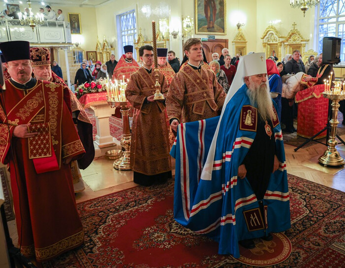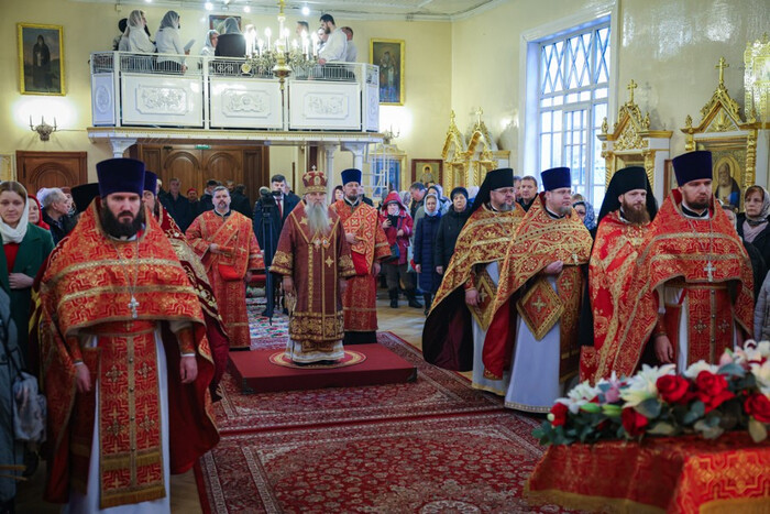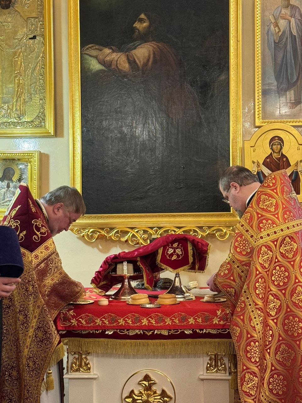 Его Высокопреосвященству сослужили секретарь епархиального управления протоиерей Сергий Куксевич, благочинный Приморского округа иеромонах Александр (Ковальский), настоятель протоиерей Александр Рябков с клиром и другие священнослужители.