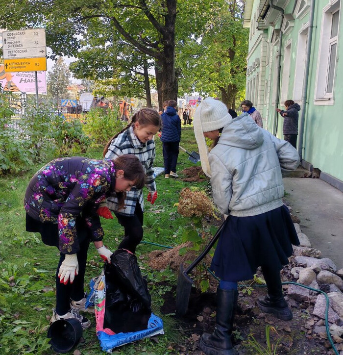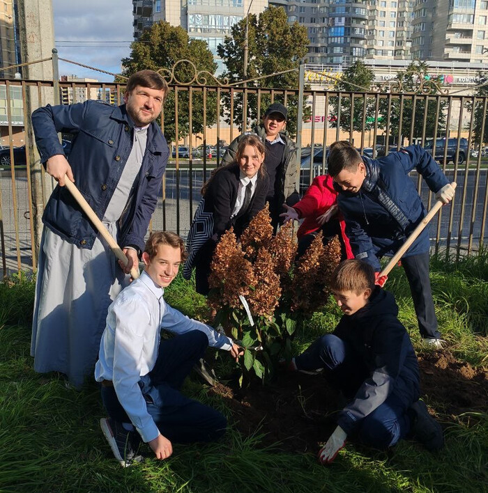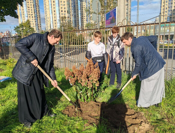 Добрые слова священнослужителей и Татьяны Григорьевны Дувановой, поздравления учителей и посадка кустов завершили этот замечательный день праздника и труда.