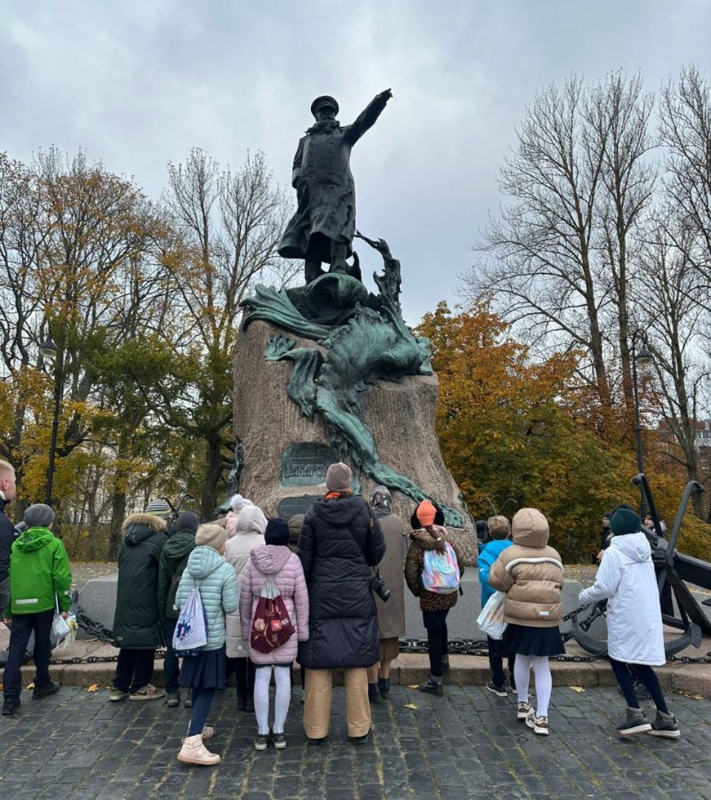 А прогулка по славному городу Кронштадту подарила много открытий! Мы узнали, что Кронштадт - это крепость, бастион, город воинской славы, крупный порт, важный центр судостроения и ремонта, место начала и завершения кругосветных плаваний. Кронштадт - настоящая кузница кадров флота России! Здесь просияли: Ушаков, Нахимов, Крузенштерн, Беллинсгаузен и другие. Кронштадт - лаборатория талантов! Здесь трудились учёные и изобретатели: конструктор минного оружия Борис Якоби, авиатор Александр Можайский, разработчик подводной лодки Александр Александровский, физик и изобретатель Александр Попов...»