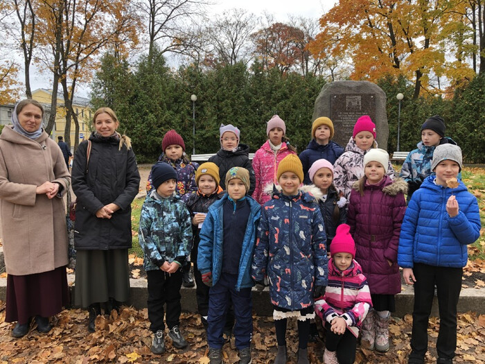 Нашу прогулку мы начали с Андреевского сквера. Ребята затихли у закладного камня собора, в котором батюшка Иоанн прослужил 53 года. Мы очень надеемся, что через какое-то время Андреевский собор обязательно будет восстановлен! А мы отправились к дому, где жил батюшка. Как хорошо, что сохранился даже балкон, с которого отец Иоанн часто говорил проповеди и благословлял своих прихожан и паломников.
