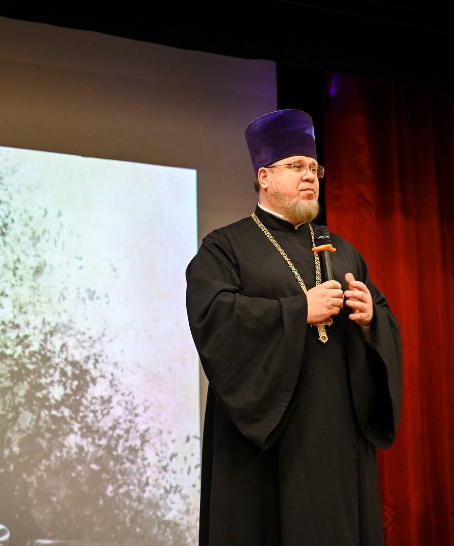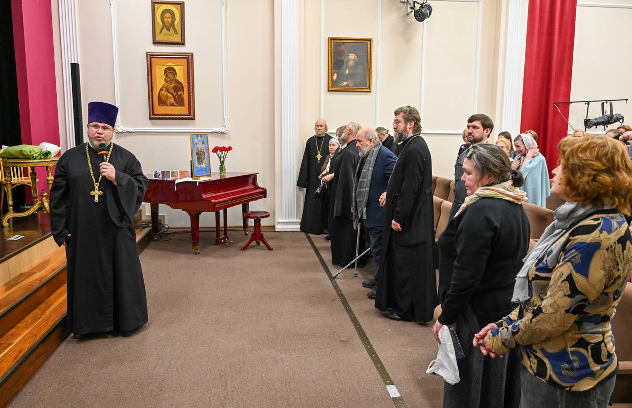 Вечер памяти епископа Вениамина, который вела Юлия Кузнецова, открыл протоиерей Роман Ковальский, настоятель Спасо-Парголовского храма, директор приходской школы, ключарь Исаакиевского собора и настоятель храма Петербургских святых на Левашовском мемориальном кладбище.