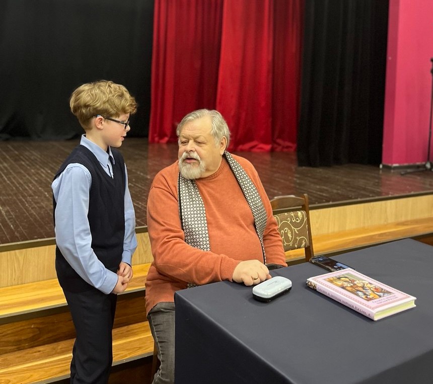 Но самое яркое впечатление ожидало нас на общешкольном классном часе! В школу пришел замечательный писатель, уже знакомый ребятам по прошлому году! Евгений Валентинович Лукин предстал перед нами в новом амплуа: исследователя и редактора!