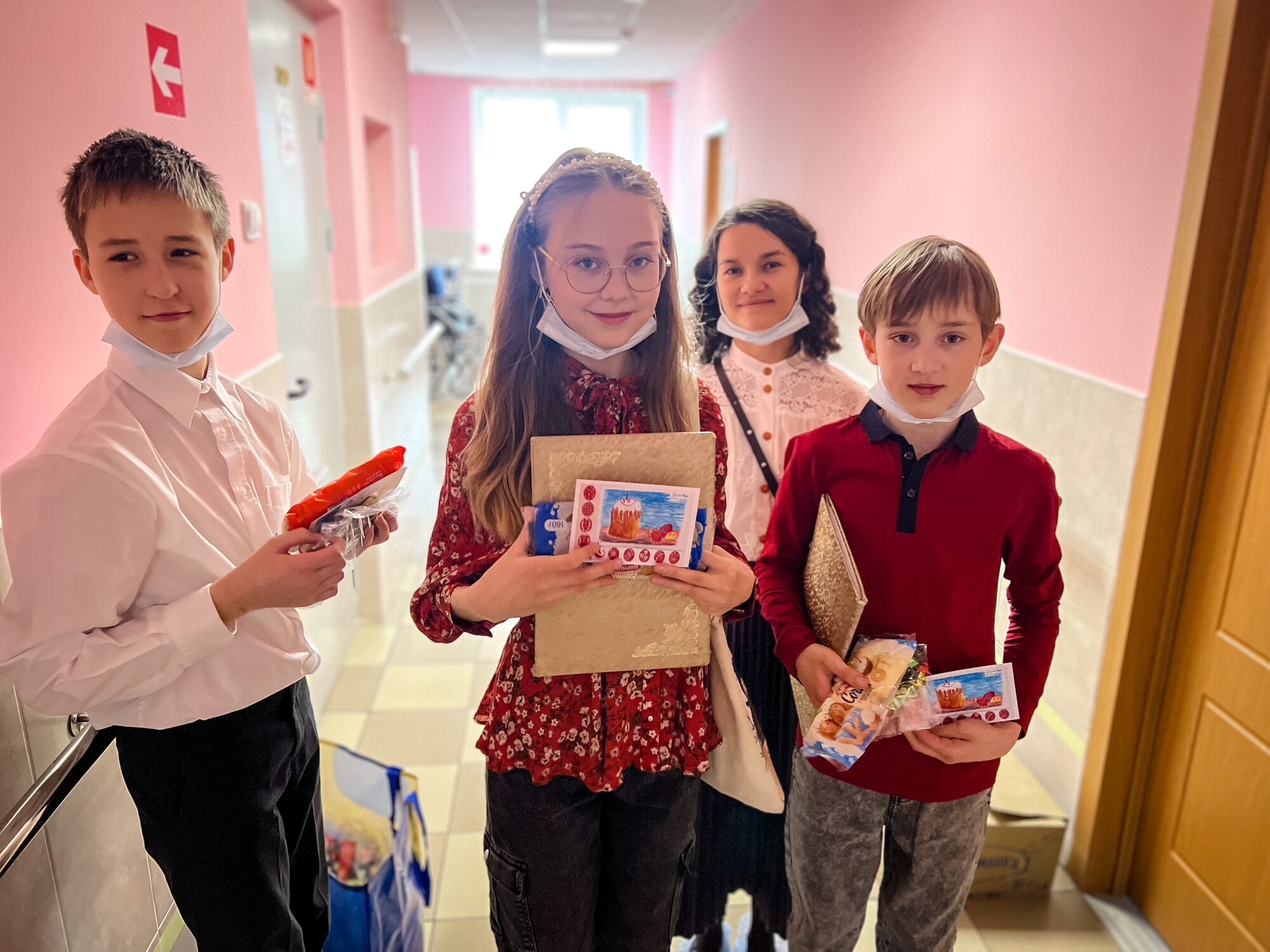 Ребята из молодёжки «взяли на себя» корпус с болящими: с позитивным настроем обходили палаты, пели тропарь, читали стихи о Пасхе Христовой.