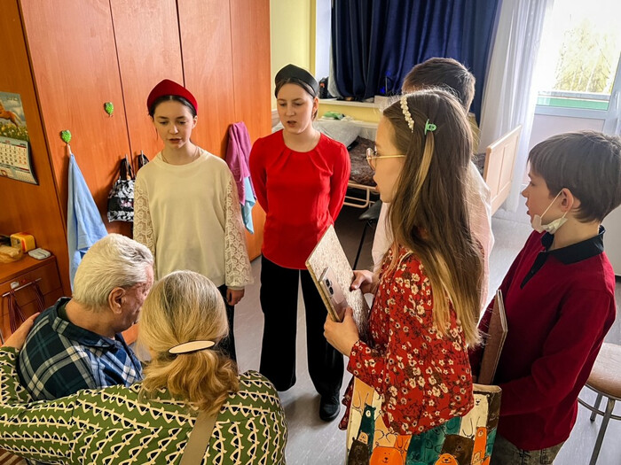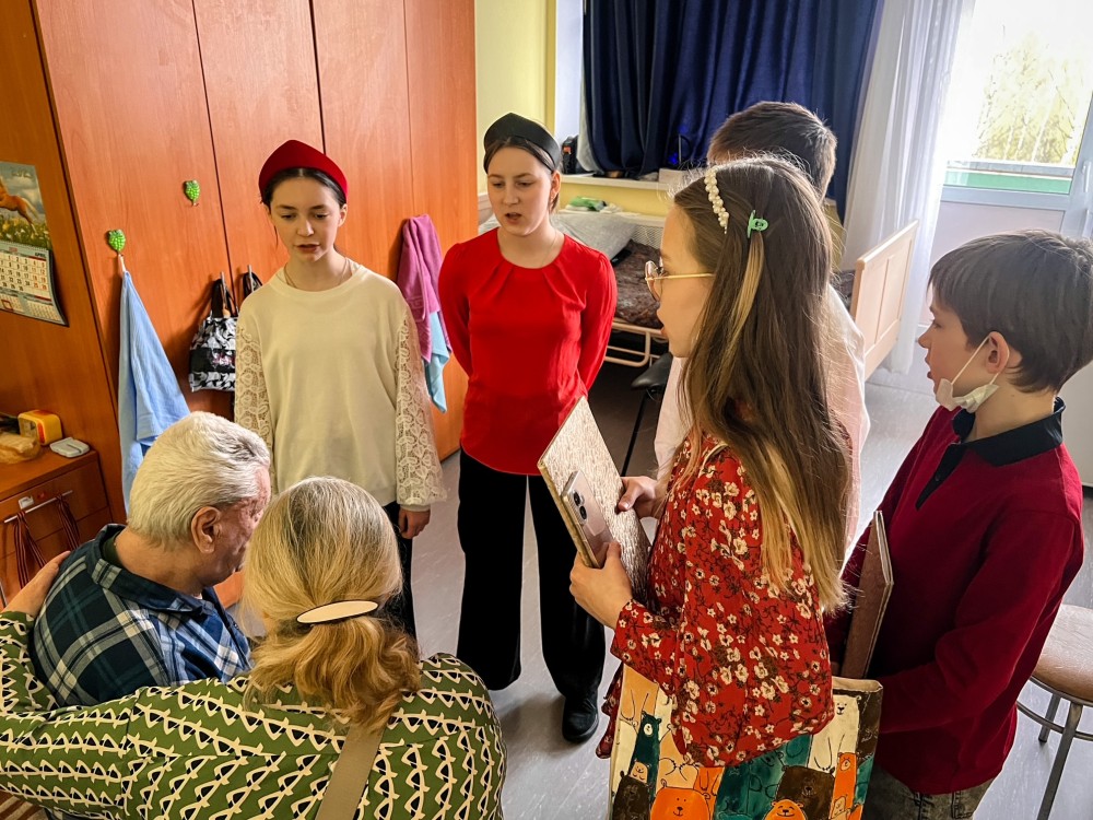 Волонтёры нашего храма, певчие хора «Парус», ребята из «Купины» и молодёжки под духовным руководством иерея Игоря Ларченко постарались от всей души поделиться пасхальной радостью с бабушками и дедушками.