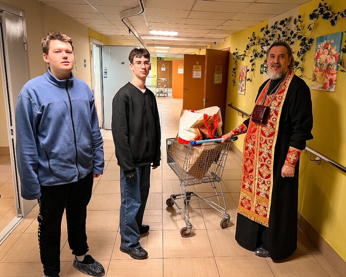 Обходя жилые комнаты и палаты, пели пасхальный тропарь, разговаривали, дарили подарки, открытки и угощения. Отец Игорь помазывал болящих освящённым маслом, беседовал и утешал. Два человека попросили о Таинстве Причастия — отец Игорь после поздравления снова посетил их и причастил.