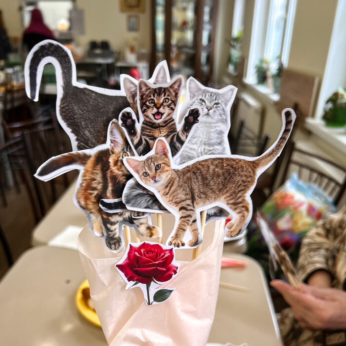 Совместили вкусное с творческим — на наш православный женский праздник сделали своими руками букеты из котиков. Кто-то нашёл среди картинок вылитого «своего кота» и составил букет с любимцем 🥰