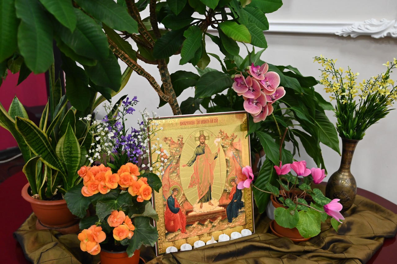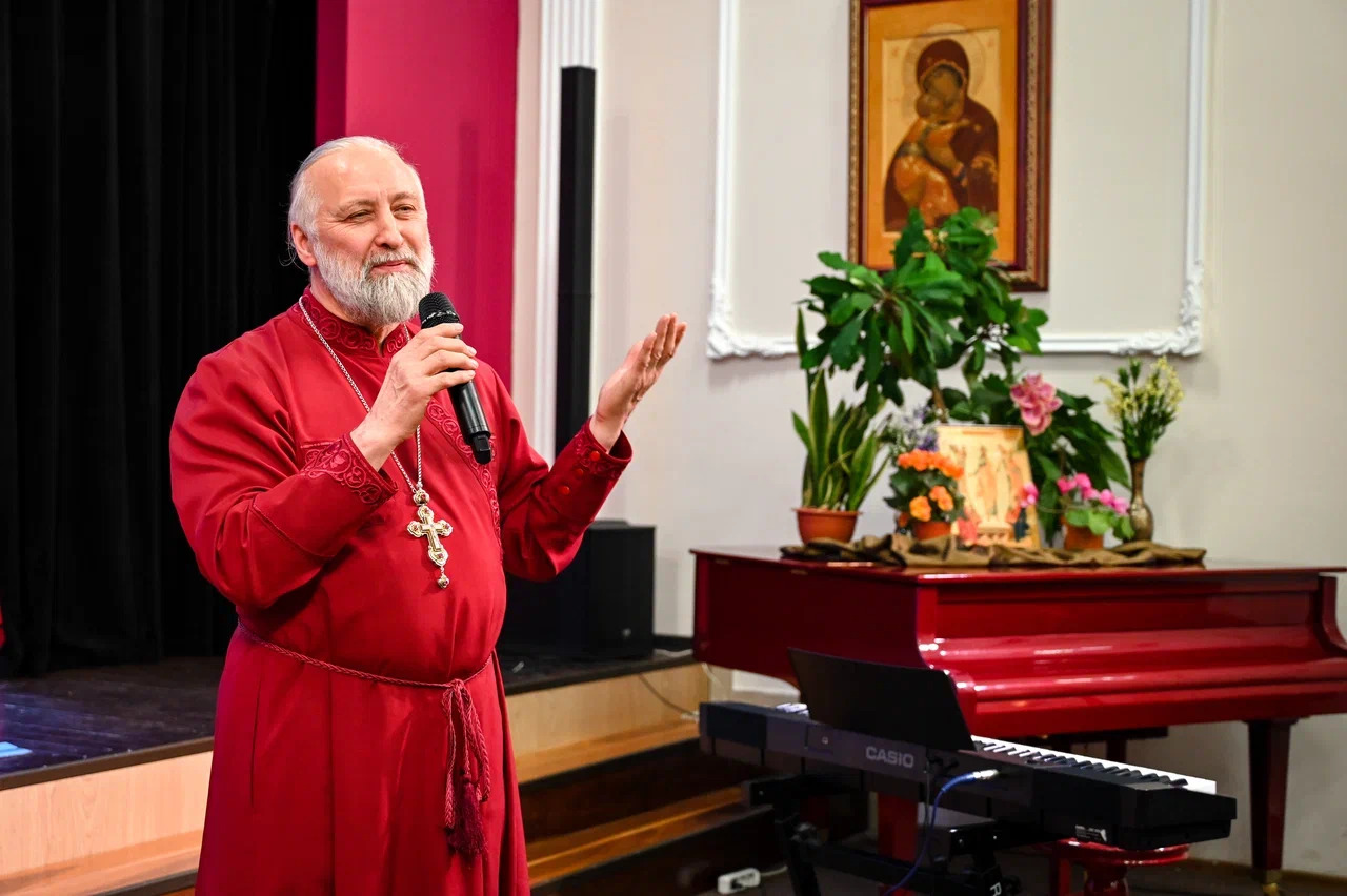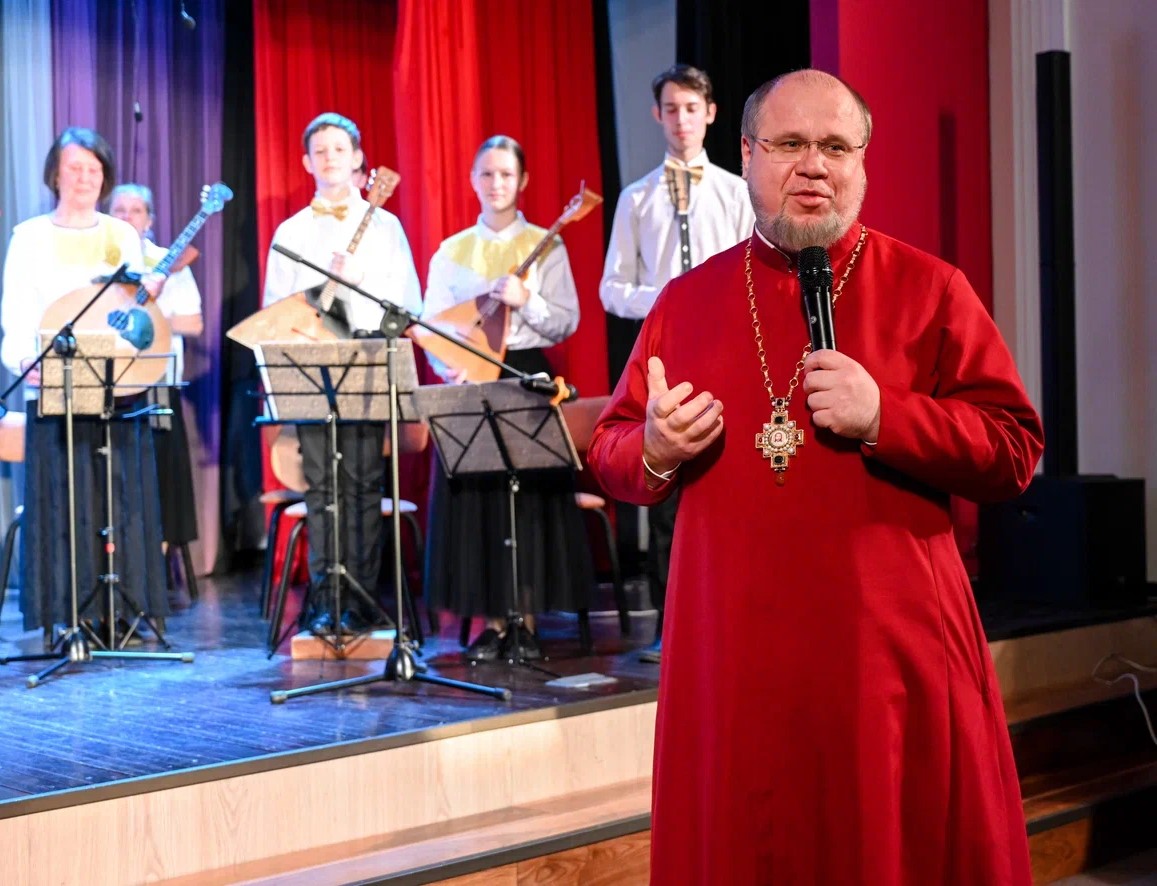 Концерт «Пасхальная радость» прошел 19 апреля в воскресной школе Спасо-Парголовского храма. Со словами поздравления к присутствующим обратились благочинный Выборгского округа, настоятель Спасо-Парголовского храма протоиерей Роман Ковальский и духовник школы протоиерей Александр Зелененко.