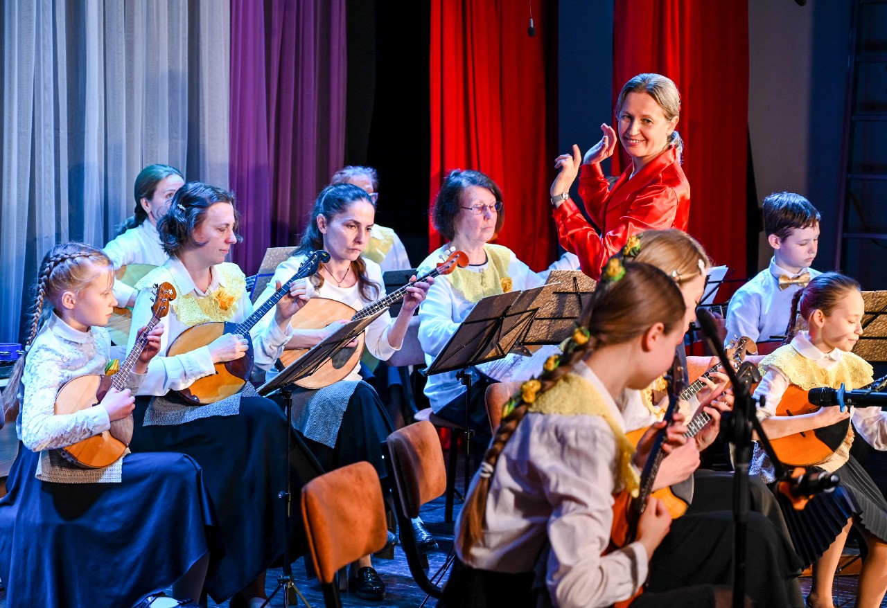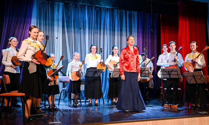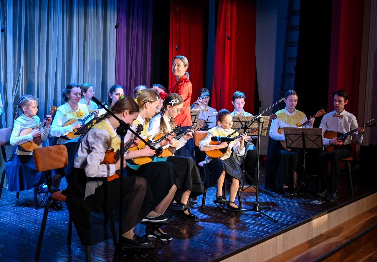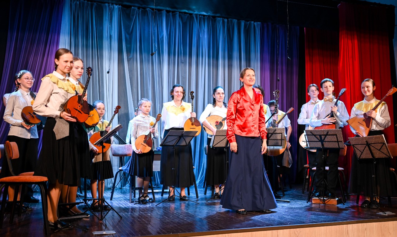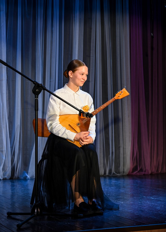 Инструменталисты музыкального отделения преподавателя Марины Евгеньевны Роговой впечатлили гостей виртуозной игрой. Елена Горовенко представила на балалайке русскую народную песню «Донцы-молодцы».