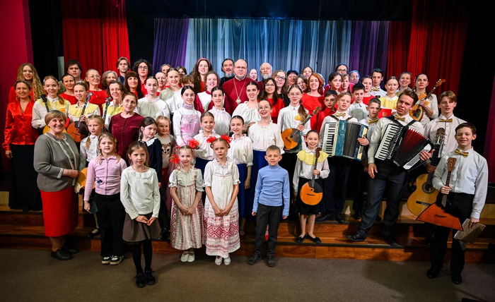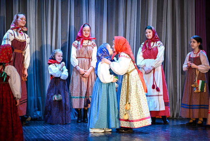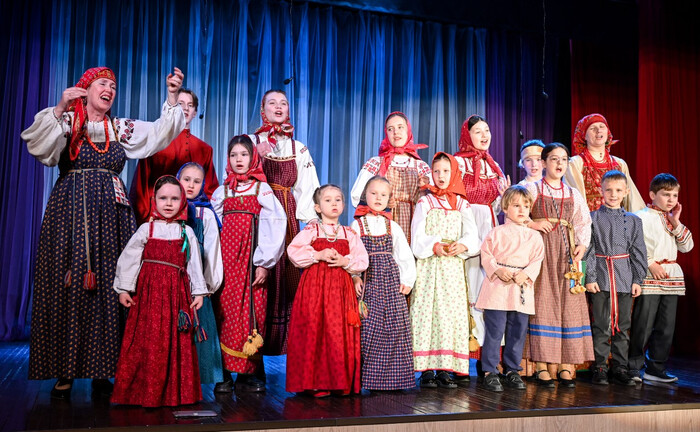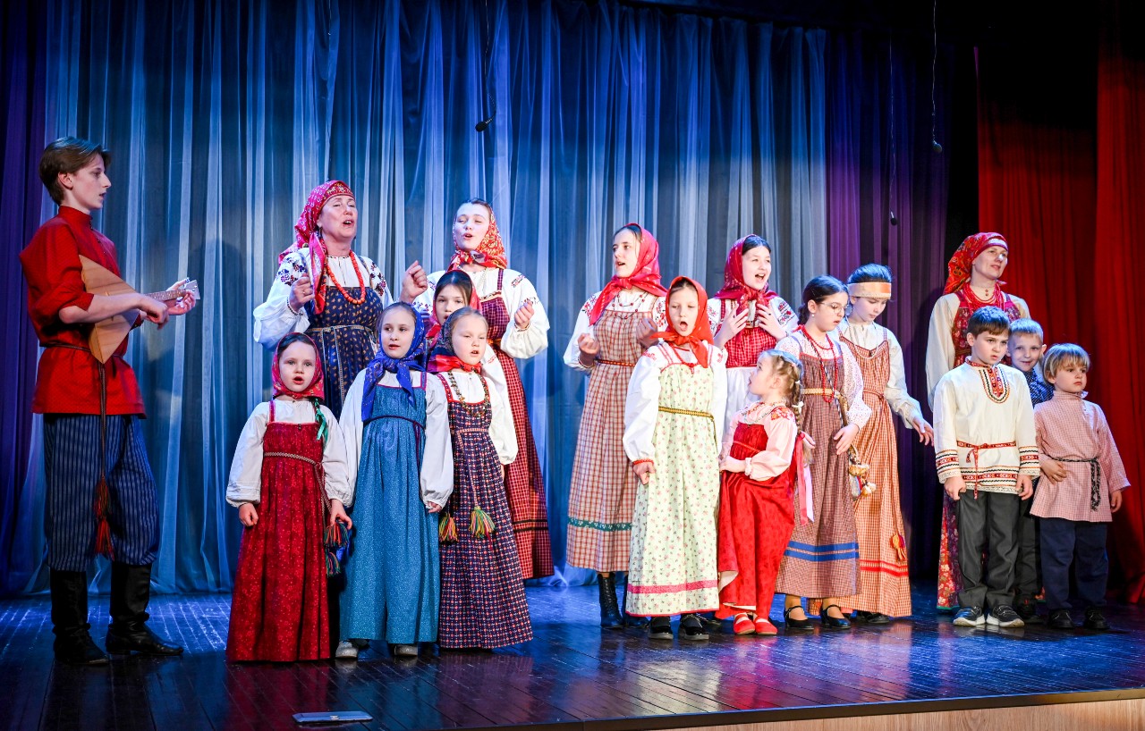 Детский фольклорный ансамбль «Кужель» клуба «Февроньюшка» под руководством Татьяны Геннадьевны Удаловой исполнил тропарь Пасхи «Христос Воскресе» в народной традиции и волочебные песни, в очередной раз показав зрителям, что обращение к музыкальным истокам народного творчества и духовному наследию – путь к нашему возрождению и преображению.
