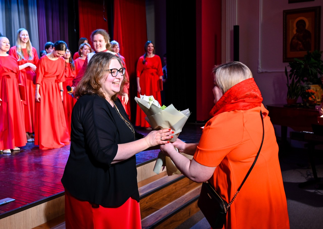 В представлении произведений приняла участие концертмейстер Екатерина Евгеньевна Поликарпова. Все песни прозвучали ярко и искрометно. Богатая палитра хоровых красок, художественная целостность и гармоничность исполнения никого не оставили безучастным.
