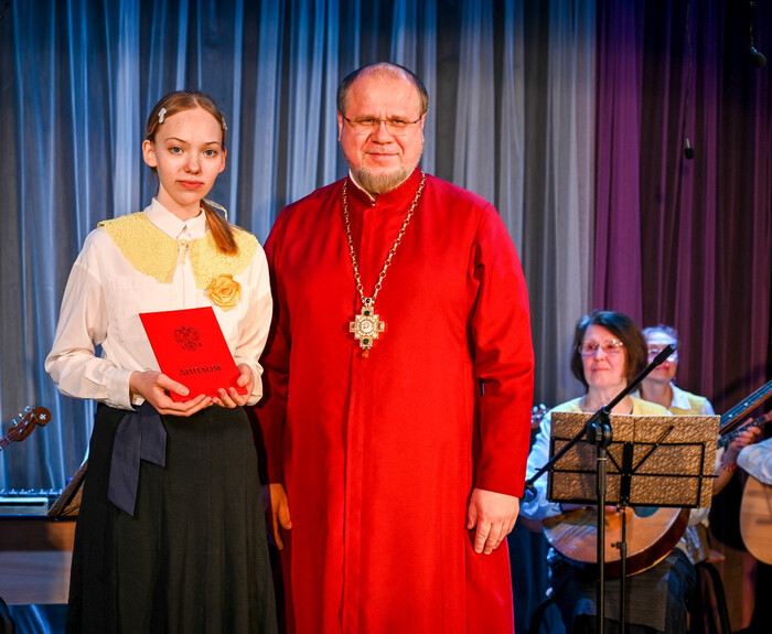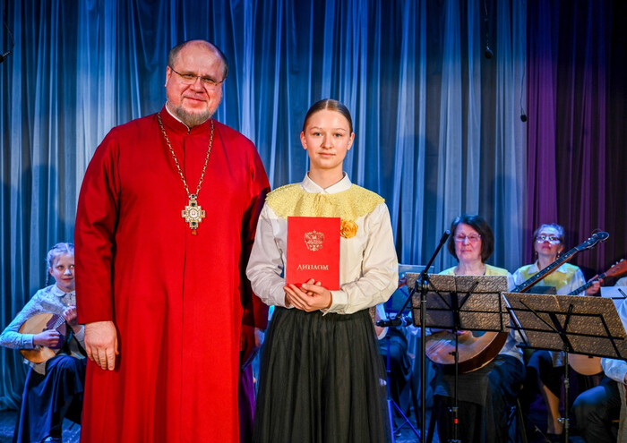 На мероприятии было отмечено важное событие в творческой жизни Веры Федотченковой и Елены Горовенко – успешное окончание обучения на музыкальном отделении воскресной школы имени святого праведного Иоанна Кронштадтского при Спасо-Парголовском храме. Дипломы инструменталисткам вручил благочинный Выборгского округа, директор воскресной школы протоиерей Роман Ковальский.
