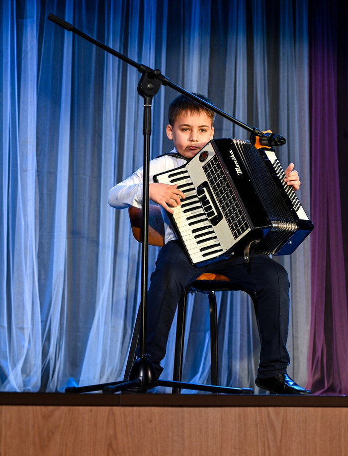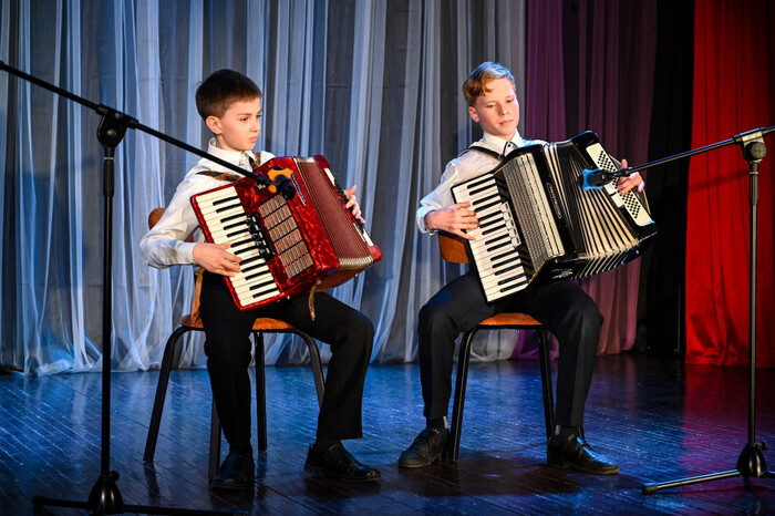 С музыкальными поздравлениями выступили талантливые ученики преподавателя Надежды Николаевны Вороновой по классу аккордеона. В исполнении Александра Лазаревского прозвучала «Детская сюита» Геннадия Беляева, а дуэт Ивана Заборовского и Ивана Калинина сыграл веселый «Русский танец», подарив зрителям прекрасное весеннее настроение.