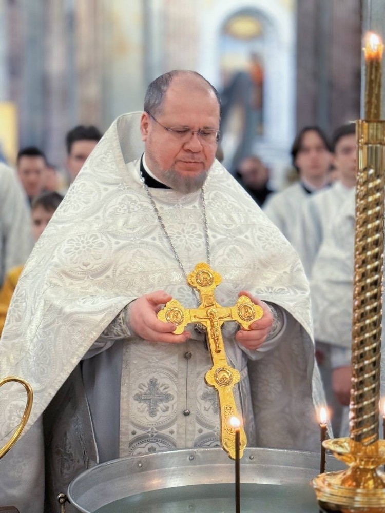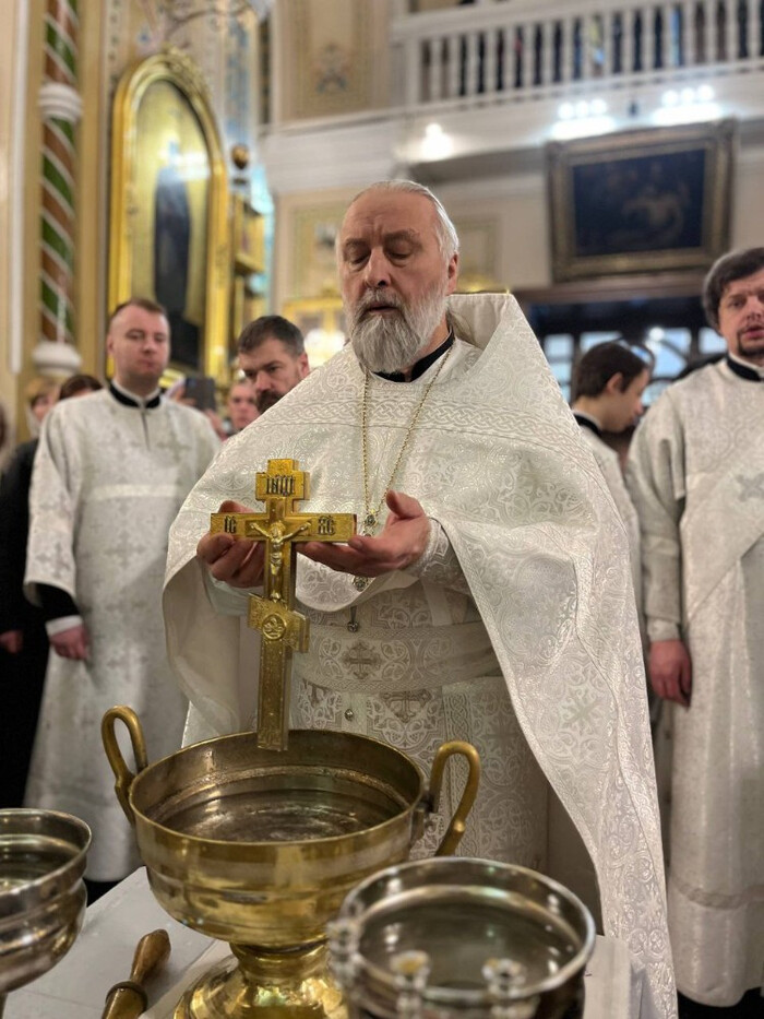 По окончании службы отец Роман совершил чин Великого освящения воды, после чего под сводами собора прозвучало торжественное славление праздника.
