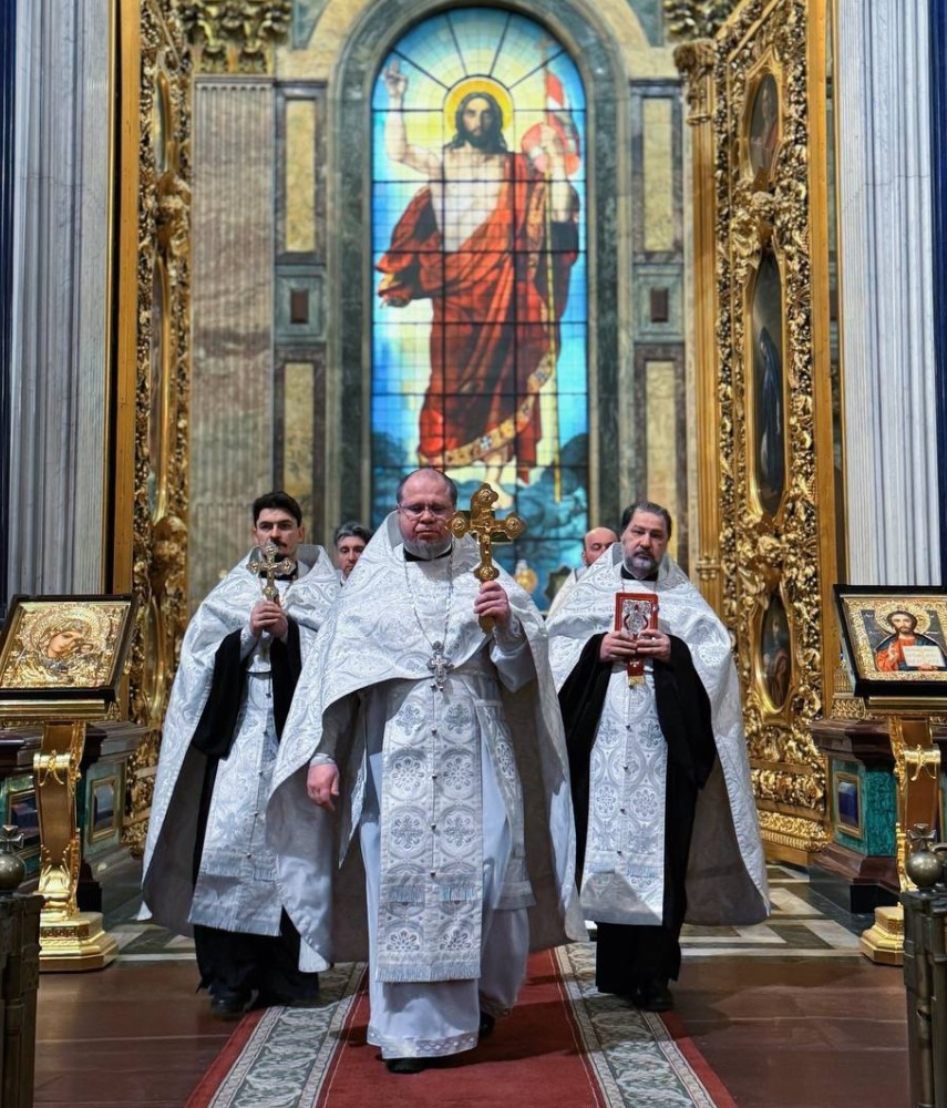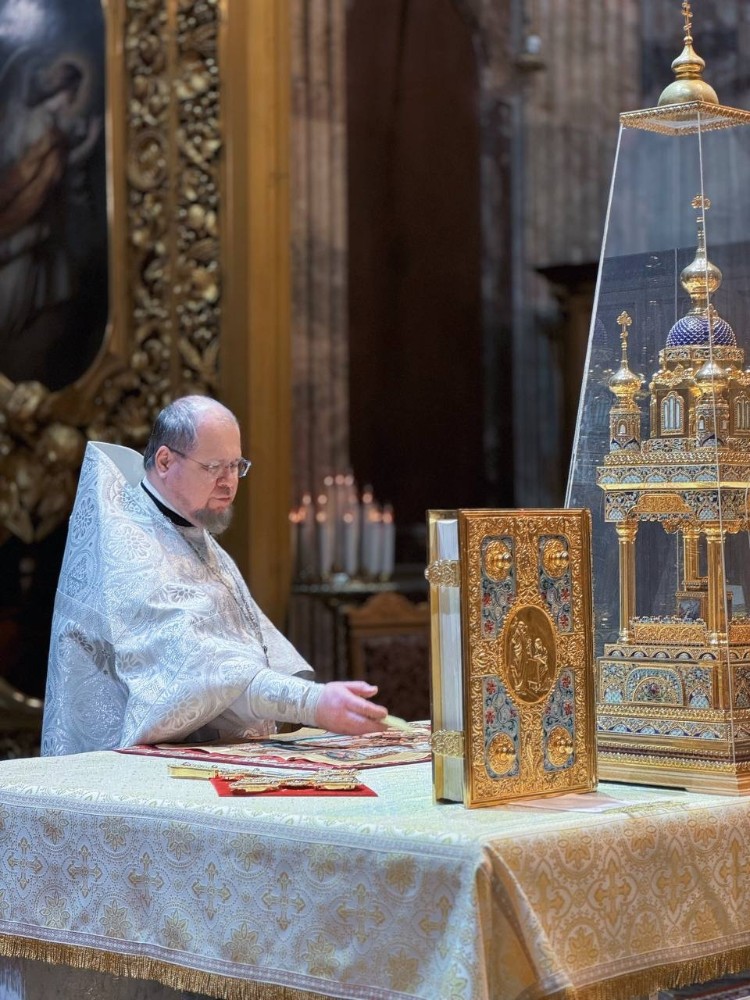 В этот знаменательный день праздничные богослужения в Исаакиевском соборе возглавил протоиерей Роман Ковальский, благочинный Выборгского округа, ключарь Исаакиевского собора, настоятель Спасо-Парголовского храма и храма Всех Святых, в земле Санкт-Петербургской просиявших.