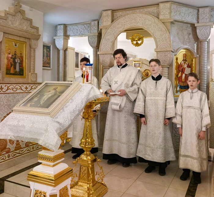 Были совершены Всенощное бдение, Божественная Литургия святителя Иоанна Златоуста и великая вечерня.
