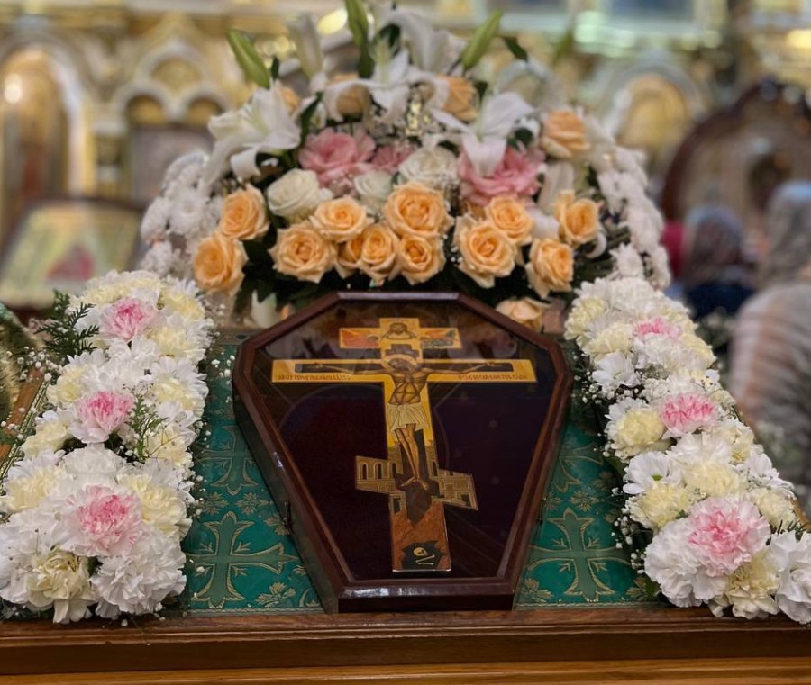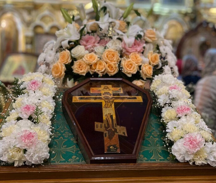 Крест будет находится в центре храма для поклонения верующим до 4 октября - дня отдания праздника Крестовоздвижения.