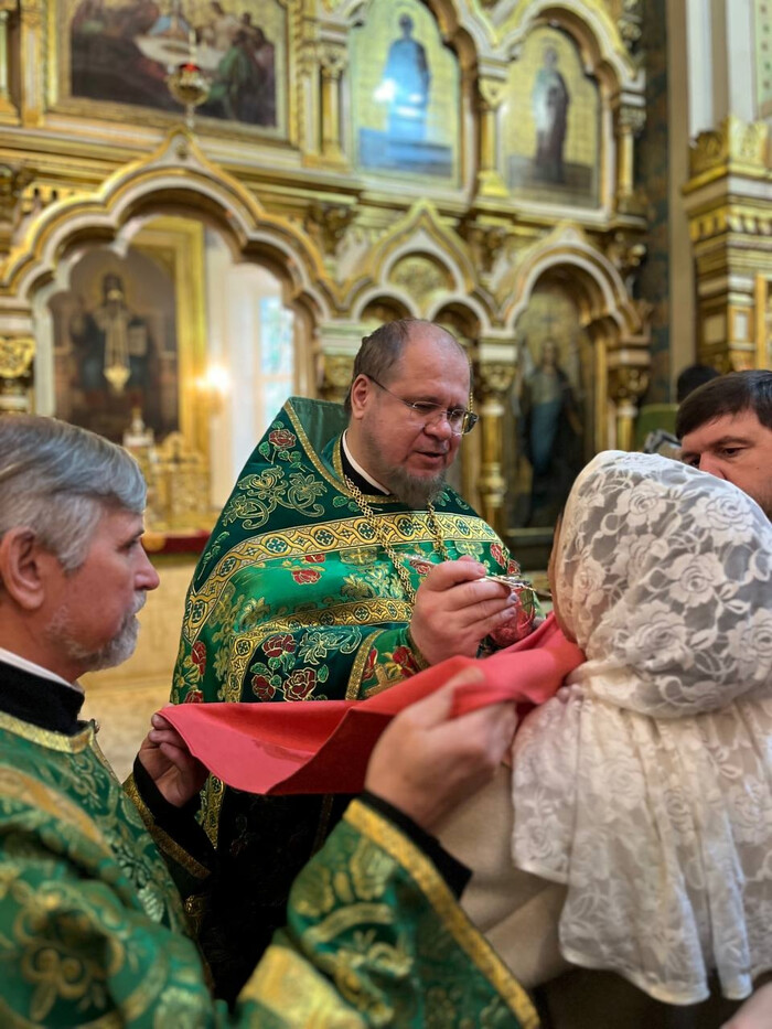 По окончании Литургии отец Роман и духовенство собора совершили славление и поклонились Кресту Господню.