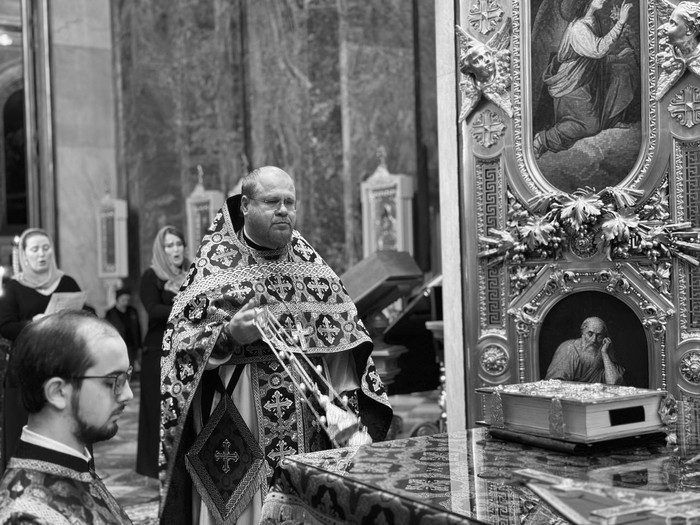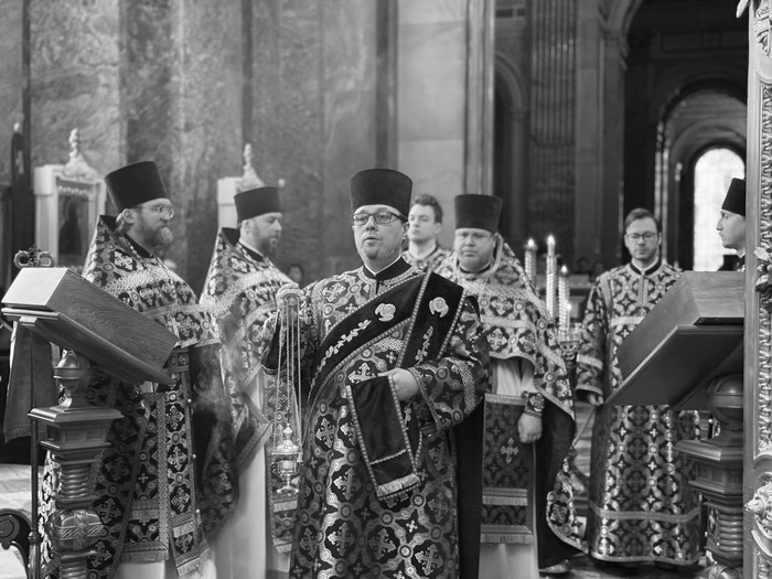 Протоиерей Роман Ковальский, ключарь Исаакиевского собора, настоятель Спасо-Парголовского храма и храма всех святых, в земле Санкт-Петербургской просиявших в Левашово, возглавил возглавил богослужение в Исаакиевском соборе.
