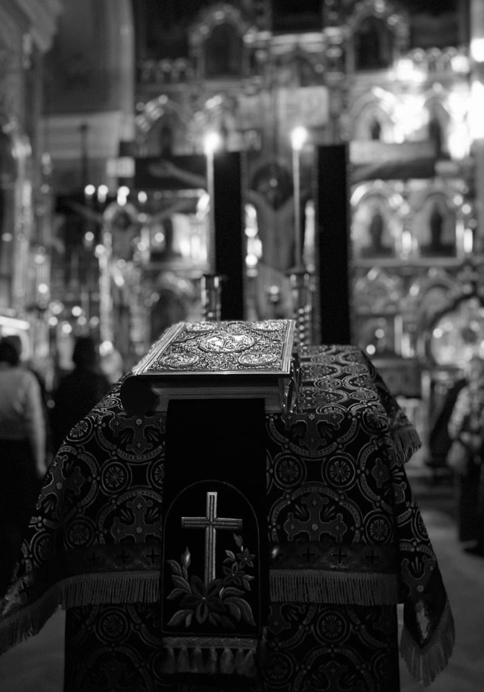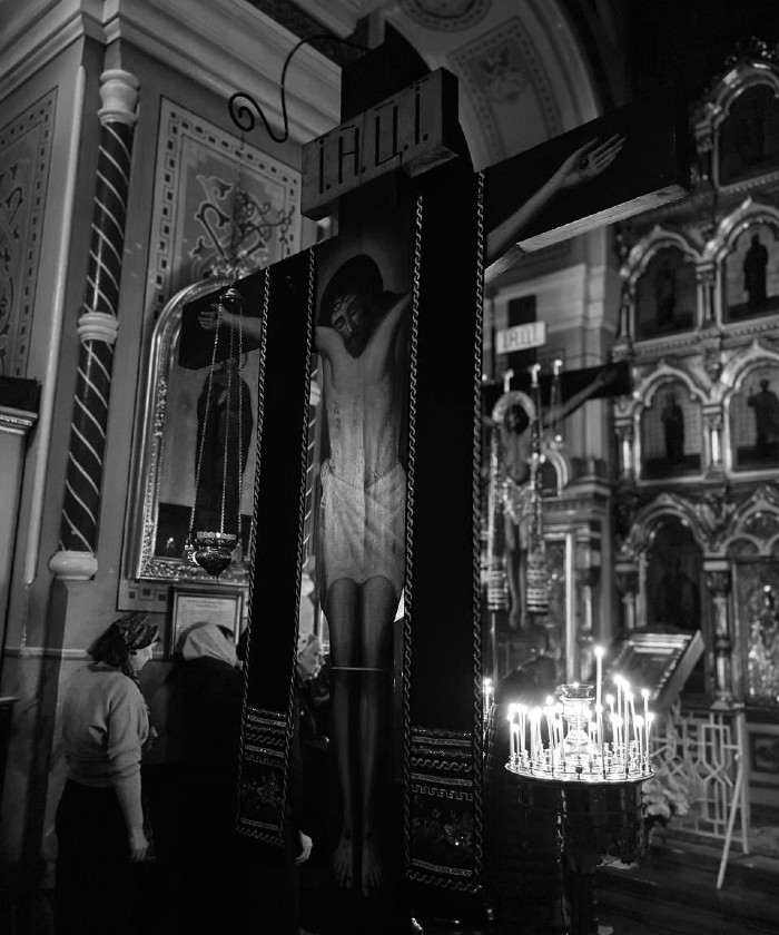 Храм вновь облачился в черный цвет. В центре — Крест и Святое Евангелие, переносящие нас на судилище к Пилату. Пассия — это не просто красивое последование, а совместное проживание евангельских событий. Когда под сводами зазвучали 22-я и 23-я главы от Луки, каждый невольно замер перед внутренним вопросом: а где в этой толпе я? Смог бы я возвысить голос против всех, требующих отпустить Варавву, или испуганно промолчал бы в тени?
