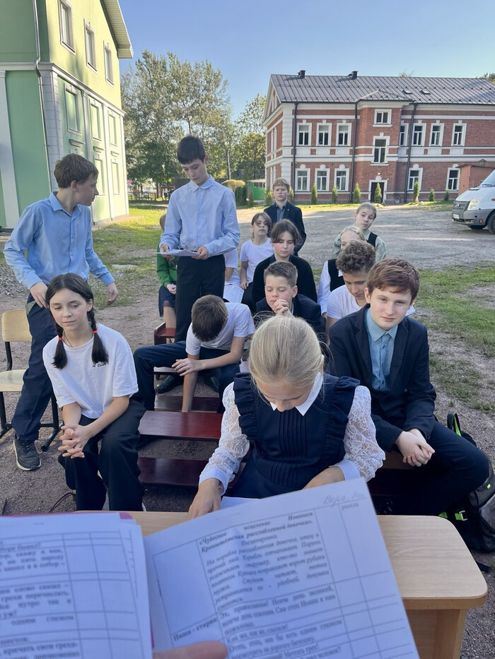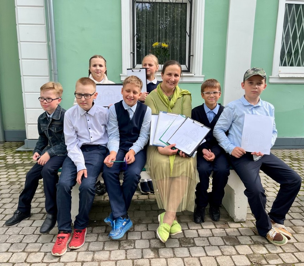 Ученики 4 класса отправились на пленэр. Ребята рассмотрели архитектурные особенности храмов, узнали краткую историю возникновения и освящения Спасо-Парголовского храма-именинника, провели мини-исследование и, конечно же, начали работу с наброском.