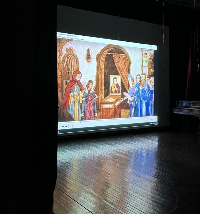 На этот раз ученики и педагоги «Родника» посмотрели анимационный фильм «Божий дар» уже знакомого нам замечательного православного режиссёра Натальи Федченко, которая вместе со своей профессиональной командой реализует первый в России и в мире проект, посвящённый иконам Пресвятой Богородицы, заступничеству Божией Матери в самые сложные и ответственные моменты истории нашего Отечества.