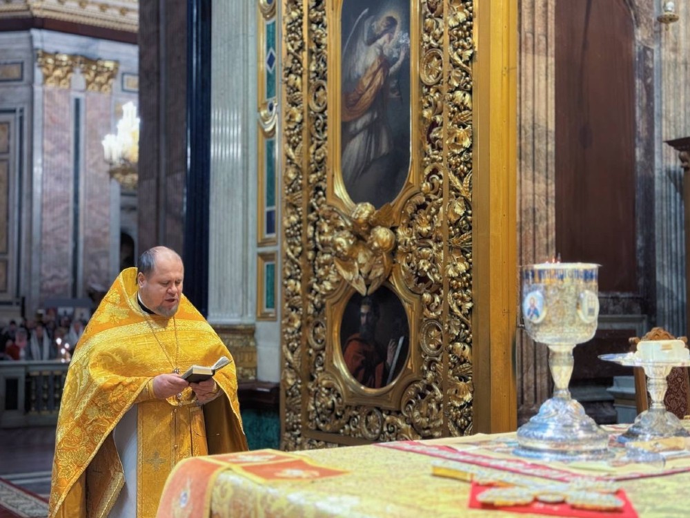 В воскресный день протоиерей Роман Ковальский возглавил Божественную Литургию в Исаакиевском соборе.