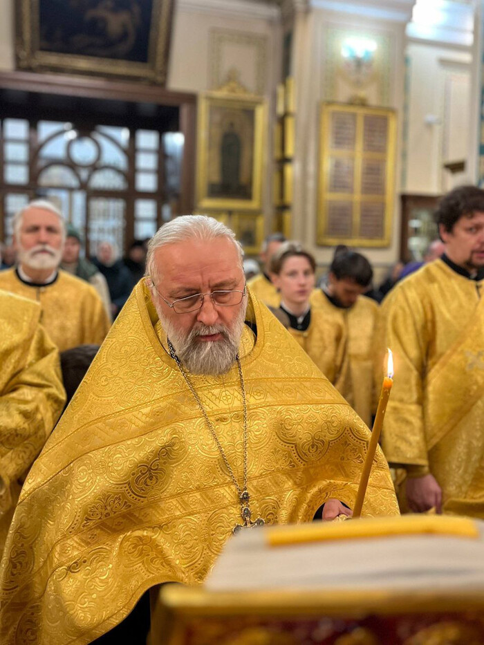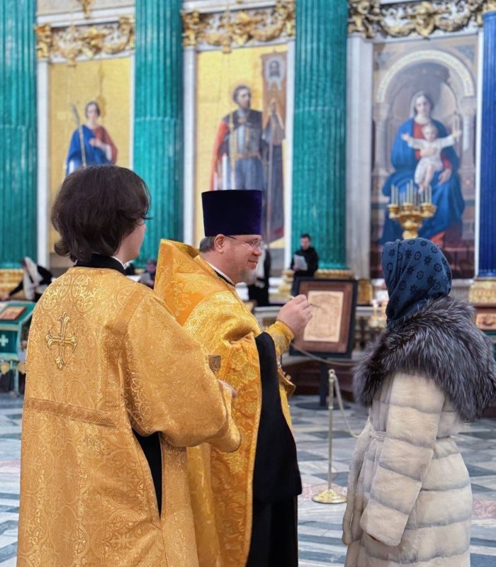 22 ноября 2025 года, в канун 24-й недели по Пятидесятнице, протоиерей Роман Ковальский, ключарь Исаакиевского собора, настоятель Спасо-Парголовского храма и храма Всех Святых в земле Санкт-Петербургской просиявших, возглавил Всенощное бдение в Исаакиевском соборе.