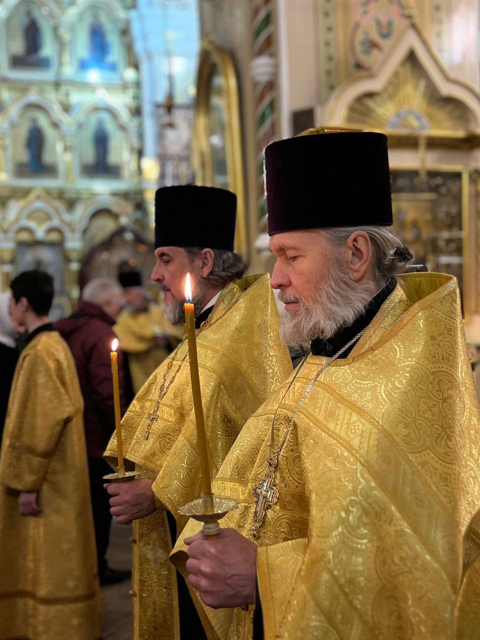 В Спасо-Парголовском храме клирики соборно отслужили Всенощное бдение.