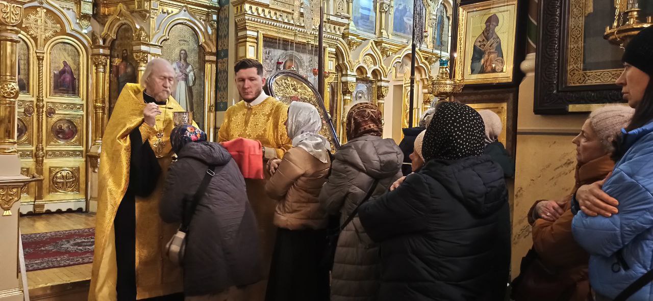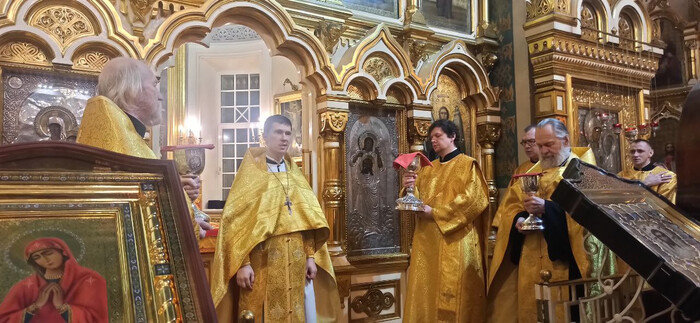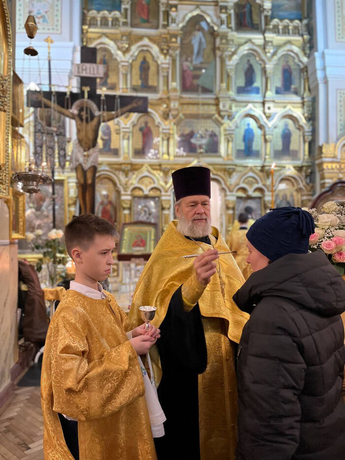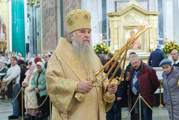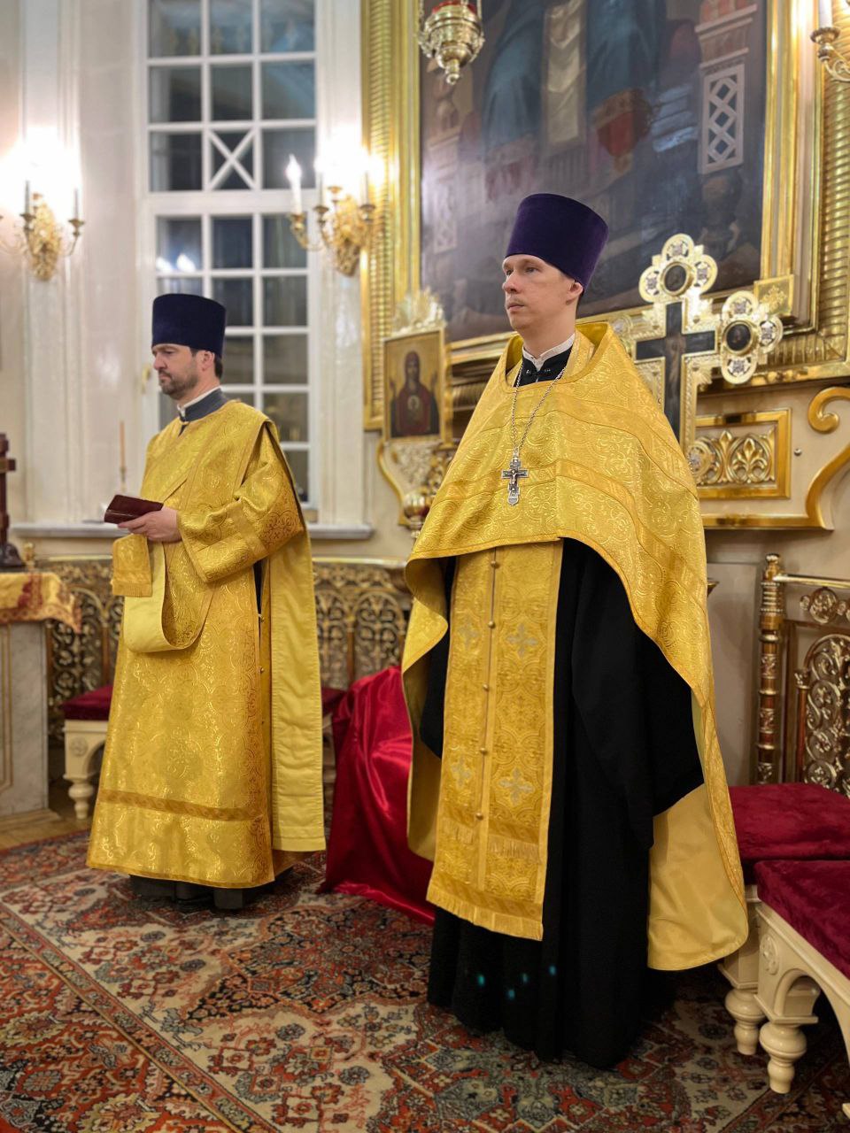 Его Высокопреосвященству также сослужили секретарь епархиального управления протоиерей Сергий Куксевич, благочинный Адмиралтейского округа протоиерей Алексий Скляров и другие священнослужители.