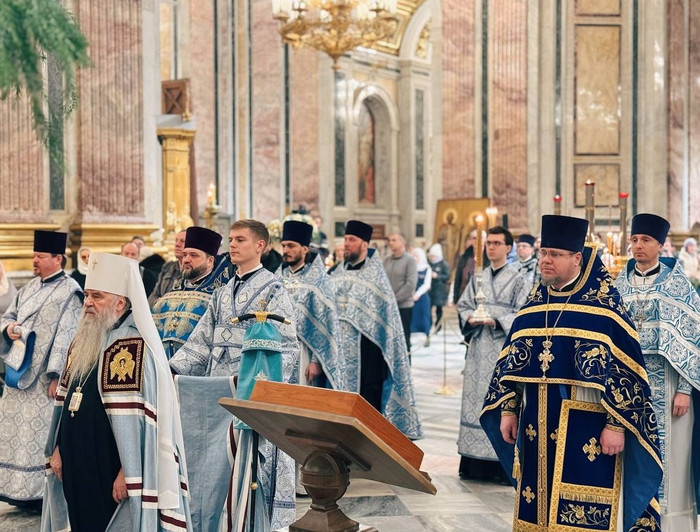 В Неделю о блудном сыне, попразднство Сретения Господня, день памяти праведных Симеона Богоприимца и Анны Пророчицы, 16 февраля, протоиерей Роман Ковальский сослужил митрополиту Санкт-Петербургскому и Ладожскому Варсонофию за Божественной литургией в Исаакиевском соборе.