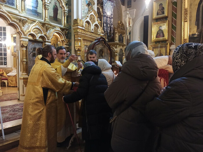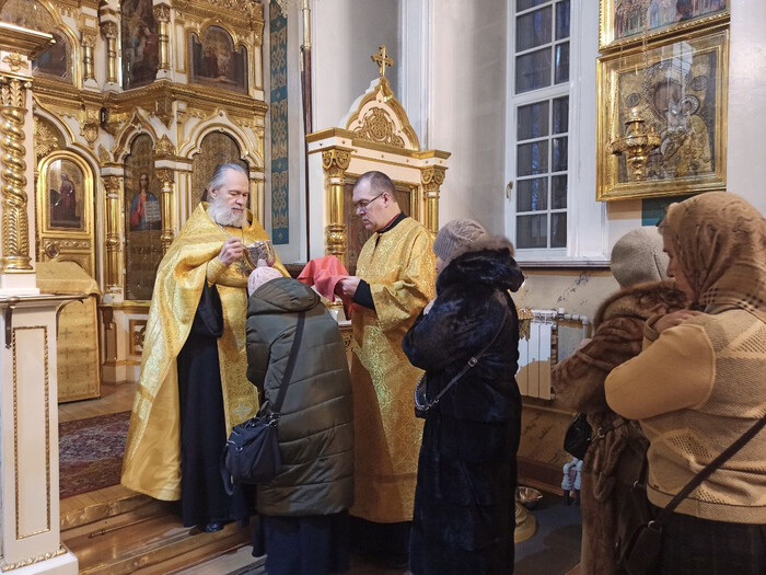 В радостный строй воскресной службы вплелись покаянные ноты: в этот вечер в храме впервые в году прозвучали песнопения Постной триоди, настраивая сердца верующих на предстоящий путь работы над собой.