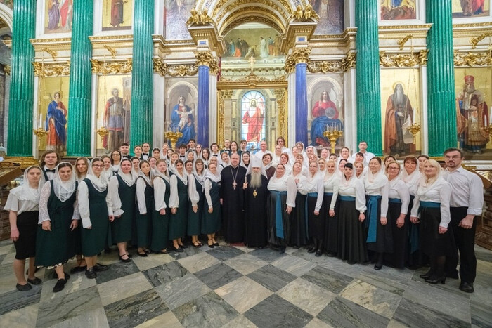 В Исаакиевском соборе в молитве объединились все: и духовенство, и директор музея Юрий Мудров, и три хора — профессиональный под управлением Льва Дунаева, молодежный Ларисы Христич и любительский под руководством Анастасии Коздринь.