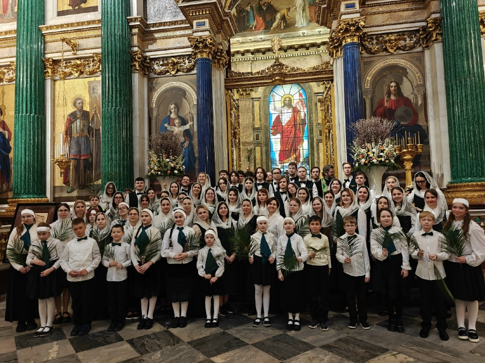 После службы вокруг собора двинулся крестный ход. Глядя на юных хоругвеносцев и воспитанников воскресных школ, среди которых были и наши ребята из центра «Родник», вспоминались евангельские строки о детях, встречавших Христа. В их руках трепетали пальмовые ветви, а на лицах сияла та чистота, к которой мы все стремимся в постные дни. После молитвы праздник для детей продолжился на высоте — экскурсией на колоннаду собора, где город открылся им во всем своем величии.