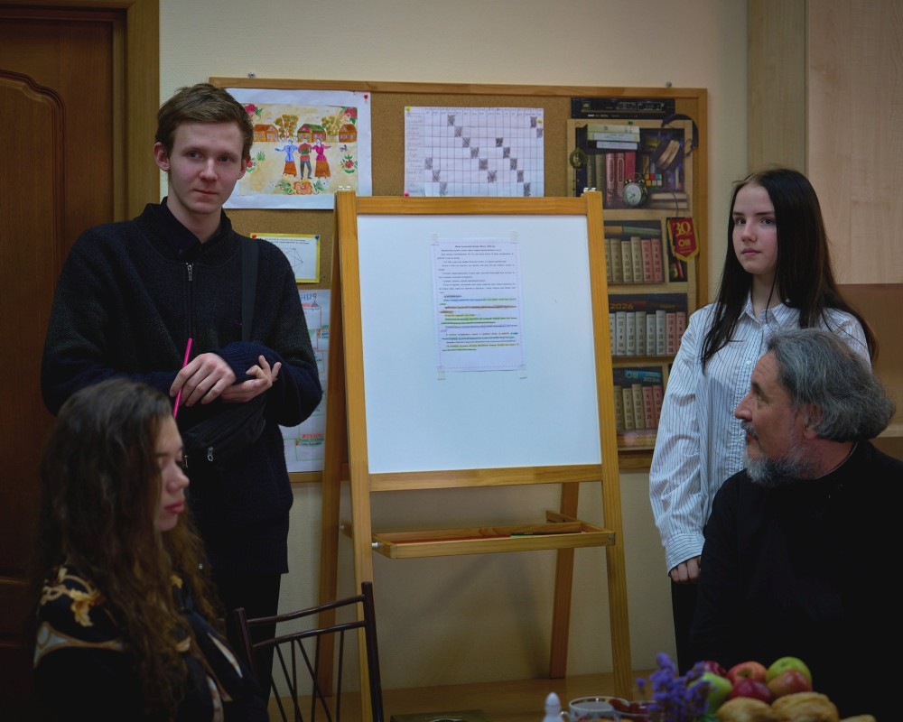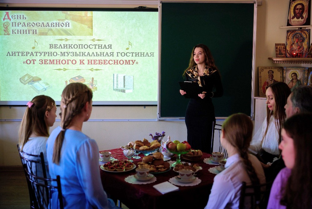 Великопостная литературно-музыкальная гостиная "ОТ ЗЕМНОГО К НЕБЕСНОМУ" прошла 15 марта в молодежной группе "Купина" воскресной школы Спасо-Парголовского храма. Мероприятие было посвящено Дню православной книги. Организаторами встречи выступили духовник молодежного направления прихода иерей Игорь Ларченко, методисты Валентина Николаевна Арутюнян и Светлана Владимировна Горленкова.