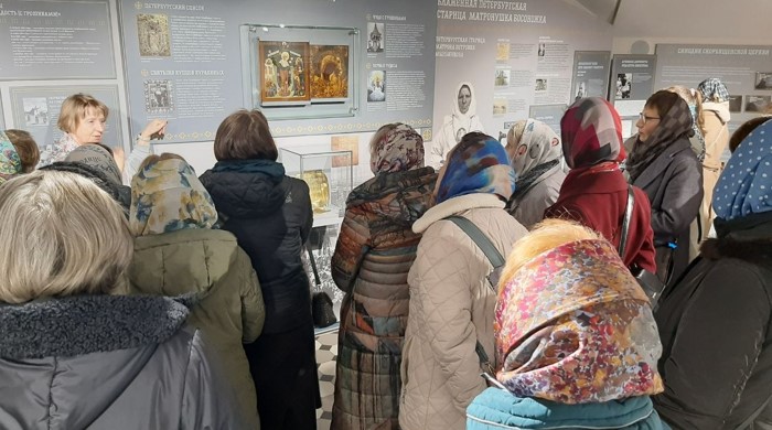 Очень интересным и значимым было и посещение подворья Свято-Троицкого Зеленецкого монастыря – храма во имя иконы «Всех скорбящих Радосте», на территории которого находится могилка всё еще непрославленной святой Матронушки Босоножки. Даже зимой Матронушка носила легкую летнюю, обязательно белую одежду. Посещала она соловецких чудотворцев, странствовала по святым местам России, четыре раза босиком ходила в Иерусалим.