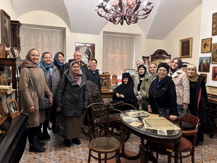 Кроме экспонатов, связанных с игуменьей Таисией, в музее хранится великая реликвия – икона Святой Троицы, написанная на огромной частице Мамврийского дуба, к которой мы, конечно, с благоговением приложились. Очень эмоциональный рассказ м.Серафимы об игуменье Таисии произвел на нас большое впечатление, а её сияющие глаза, мягкий ласковый голос впечатление многократно усилили.